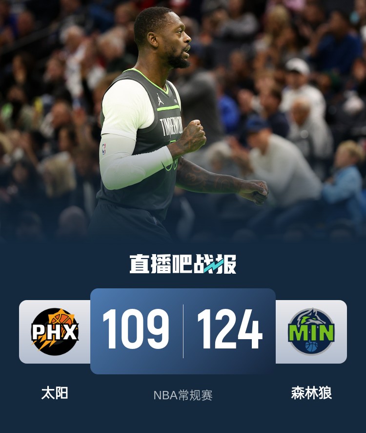兰德尔25+6+8 杜兰特23+6 布克14中4 森林狼横扫太阳