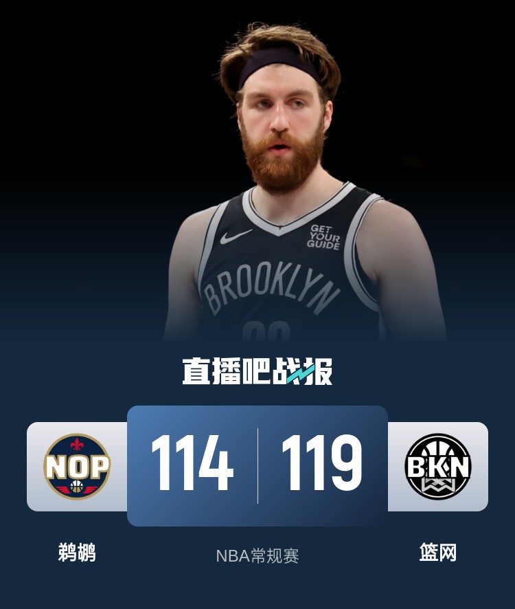 开场后篮网内外开花率先打出攻势,其中克拉克斯顿表现活跃,鹈鹕外线手感不错,接连用三分追分。第二节开始不久鹈鹕掀起一波14-1的攻势将比分反超,随后篮网回敬一个10-0稳住局面,上半场篮网保持微弱优势。易边再战,鹈鹕率先打出攻势将比分反超,但随后沃特福德状态神勇频频砍分,在他的引领下,篮网逐渐找到节奏打出攻势,单节轰下43分重新建立起两位数优势。鹈鹕在最后时刻突然掀起反扑,他们连中三分缩小分差,但未能完成反超,最终篮网119-114送鹈鹕4连败。