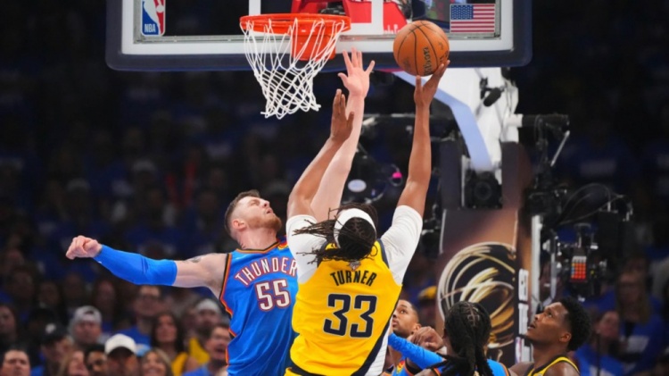 不过,我倾向于认为,步行者不至于被雷霆防守策略上的轻微调整所拦住——之所以说这是个轻微调整,是因为切特比赛后期增加了强延误和换防。给我的感觉是,戴格诺特对守沉退是有所保留的——G2第一节,步行者就有一些处理办法,比如让哈利先找华莱士或者SGA,把多特换走,再跟中锋挡拆。