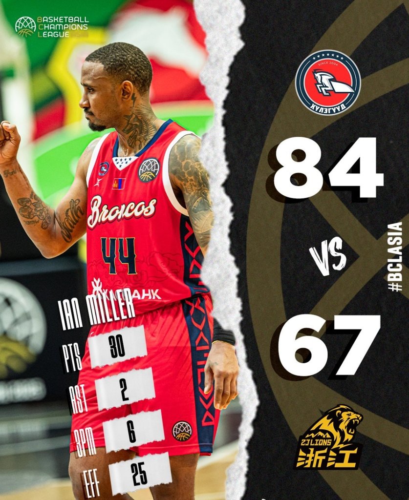 野马这边,外援伊恩-米勒17投9中,三分12中6,罚球6中6,爆砍全场最高的30分。蒙古球员楚伦巴特尔10投6中,三分4中2,罚球4中4,得到18分。