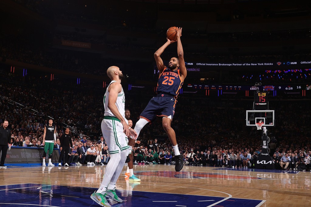 大桥不占球权的特点非常适配尼克斯目前以唐斯+布伦森为内外双核的战术体系,他上赛季常规赛球权使用率为19.6%、季后赛球权使用率19.0%——作为参照,他在太阳最后半季球权使用率为19.2%,23年季后赛在篮网球权使用率为29.8%,很明显在尼克斯有主持球手布伦森的情况下,大桥的角色和定位回到了太阳模式。