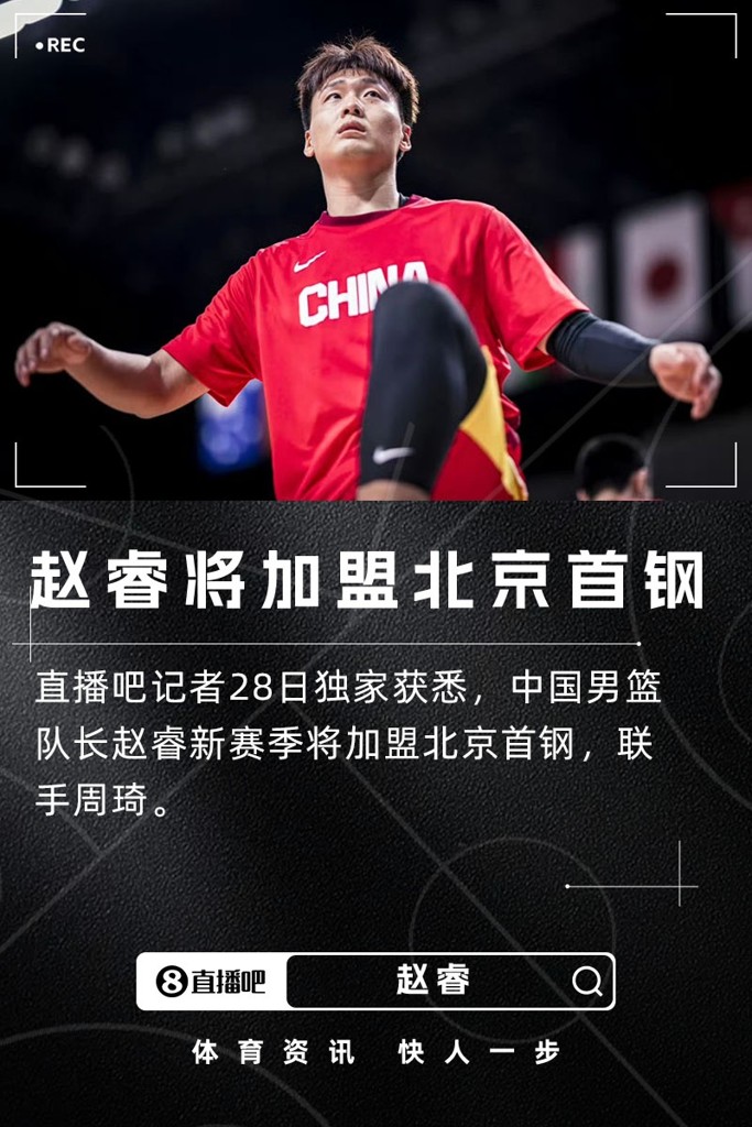 直播吧独家:中国男篮队长赵睿新赛季将加盟北京首钢