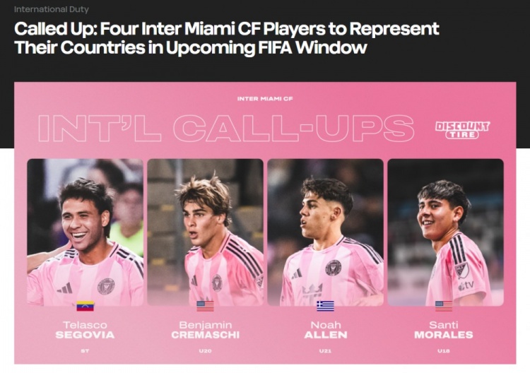 迈阿密国际四名球员获国家队征召,一人一线队三人梯队