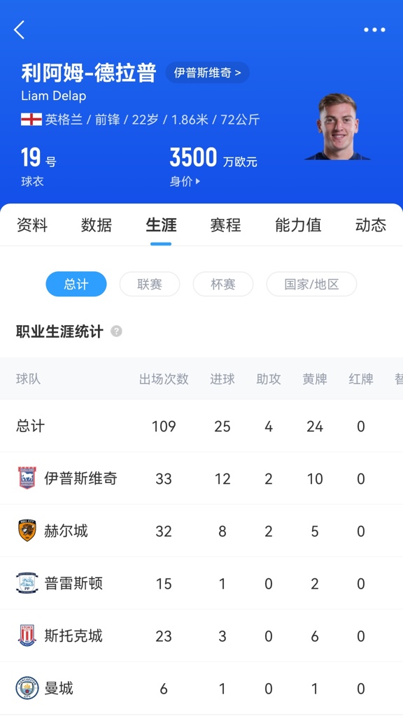 04月07日讯 消息人士告知ESPN,曼联与切尔西今夏将竞争伊普斯维奇前锋德拉普,这位英格兰前锋本赛季33场打入12球。