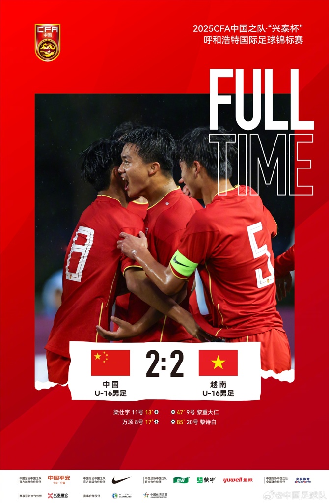 开场仅17分钟便取得了2-0的领先优势,但09国少却未能拿到3分,下半场开场便丢球,随后张君豪吃到红牌被罚下,国少被迫10打11,对手超小角度破门,最终,国少和越南2-2战平。对于这些年轻队员来说,这是一堂非常深刻的教训课。