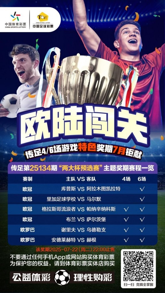 欧陆闯关!传足特色奖期第25134期聚焦两大杯预选赛