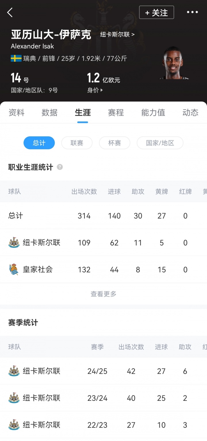今天早些时候,纽卡宣布伊萨克不会随队前往亚洲进行季前赛,官方给出的原因是“大腿伤病”。