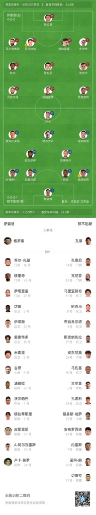 萨索洛替补:16-扎基、49-穆里奇、12-萨塔里诺、5-坎德、21-伊泽斯、15-爱德华多、2-米索里、8-吉昂、20-法德拉、7-沃尔帕托、9-穆拉蒂耶里、77-皮耶里尼、25-A-阿尔瓦雷斯、24-卢卡-莫罗